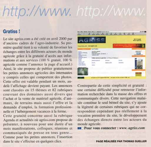 Accueil ~ Annuaire ~ Librairie ~ Météo ~ Petites annonces agricoles ~ Agenda